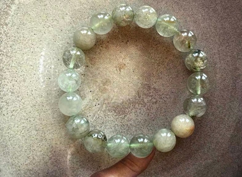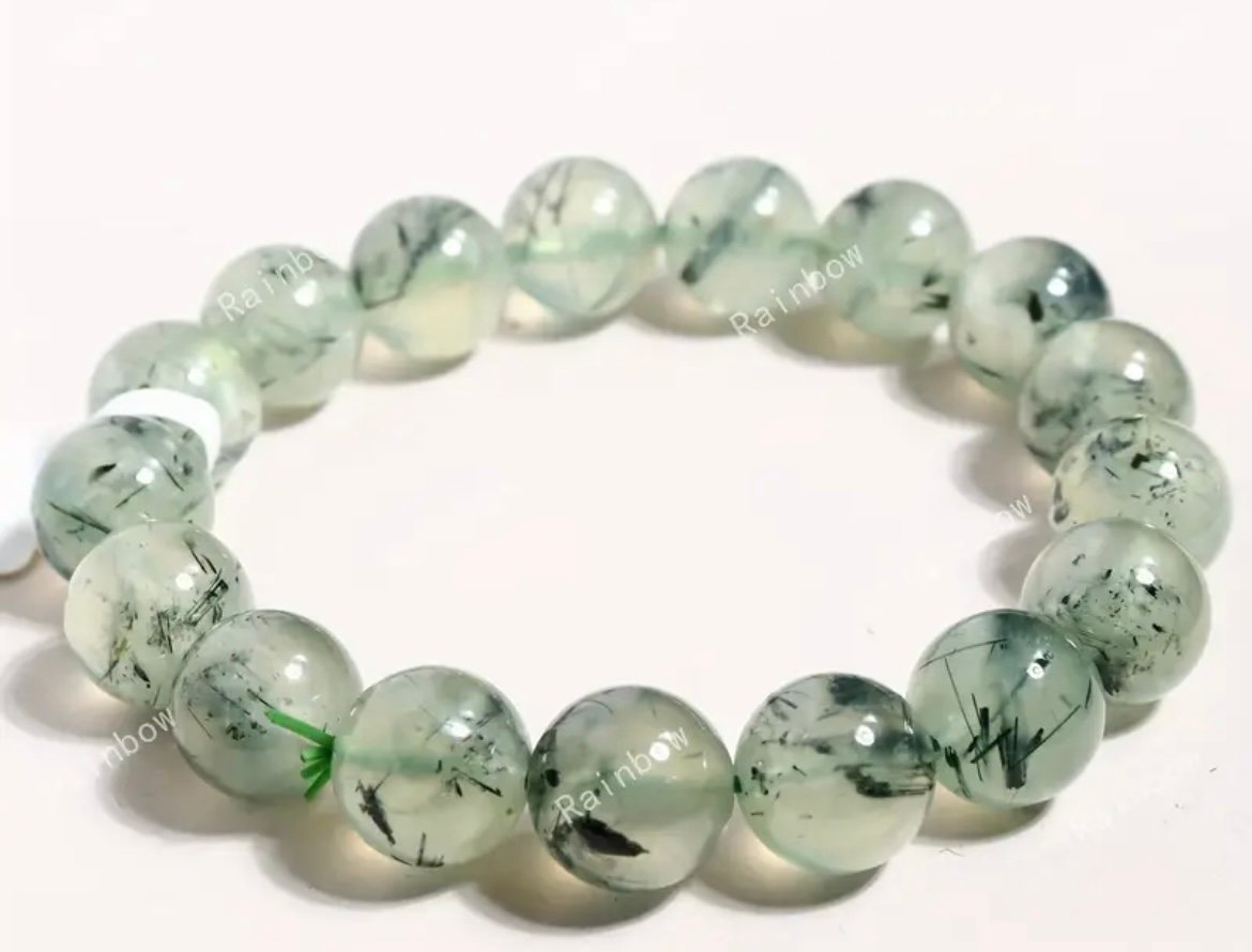 Der Prehnit, bekannt als „Stein der Heilung“, zeichnet sich durch seine zartgrüne Farbgebung und die feinen, natürlichen Einschüsse aus, die jedes Armband zu einem Unikat machen. Prehnit wird häufig für seine beruhigende Wirkung und seine Verbindung zur inneren Balance geschätzt – ideal für alle, die einen klaren Kopf in hektischen Zeiten bewahren möchten. Tragen Sie das Armband nicht nur als stilvolles Accessoire, sondern auch als Begleiter für die innere Ruhe.